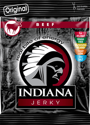 Indiana Jerky hovädzie originál 25 g Originálna receptúra s nezameniteľnou európskou slanou príchuťou mäsa. Zloženie: mäso, jedlá soľ, soľ z mŕtveho mora, cukor, bielkovinový sójový hydrolyzát, kvasnicový extrakt, vínny ocot, farbivo: karamel, dextróza, korenie, maltodextrín, cesnak, aróma, dymové aróma, konzervant: dusitan sodný. Každé balenie obsahuje absorbér kyslíka, ktorý zachováva chuť a arómu bez akejkoľvek negatívnej kontaminácie po celú dobu trvanlivosti produktu. Originálna receptúra s nezameniteľnou európskou slanou príchuťou mäsa.